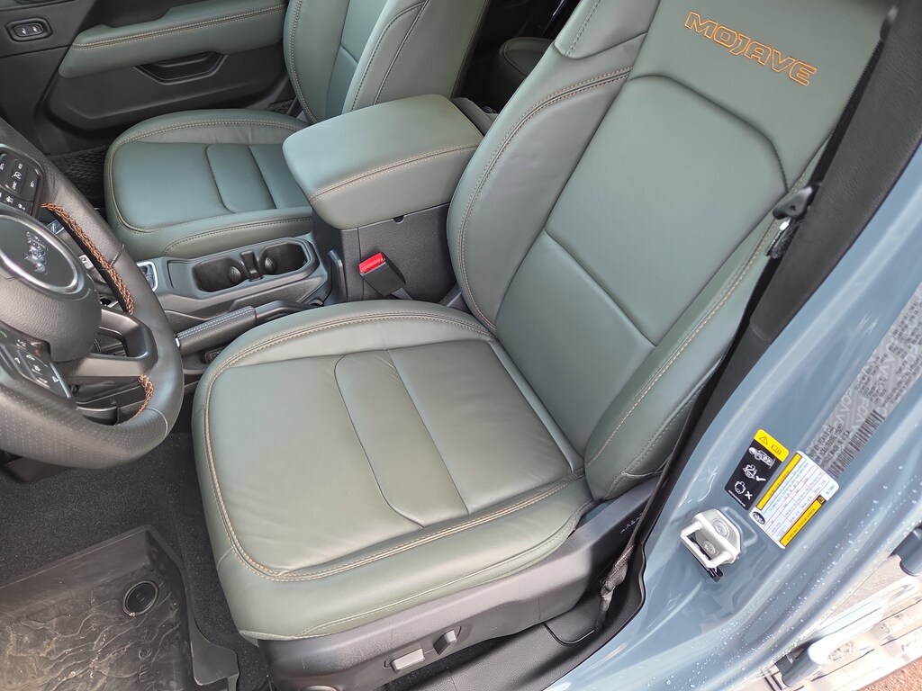 Built for adventure, the Mojave brings purpose-built performance equipment like FOX 2.5 Performance Internal Bypass shocks, hydro jounce bumpers, 33 all-terrain tires, Dana 44 wide axles, 4.10 axle ratio, Tru-Lok rear axle, and skid plates for added protection. Inside, enjoy modern tech and convenience with Uconnect 5 and a massive 12.3 touchscreen, Apple CarPlay, Android Auto, Alexa Built-In, 4G LTE Wi-Fi hotspot, and available GPS Navigation through the Mojave X Package.