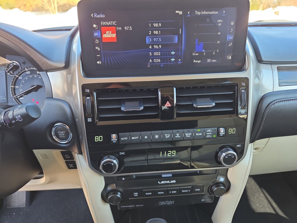 Inside, enjoy first-class comfort and premium upgrades from the Premium Plus Package, including heated and ventilated front seats, heated outboard 2nd-row seats, 3-zone automatic climate control, Gray Sapele wood trim, rain-sensing wipers, and windshield de-icer. The Mark Levinson 17-speaker surround sound system brings concert-quality audio to every trip, while the Lexus Multimedia System with a 10.3 touchscreen keeps everything within reach.